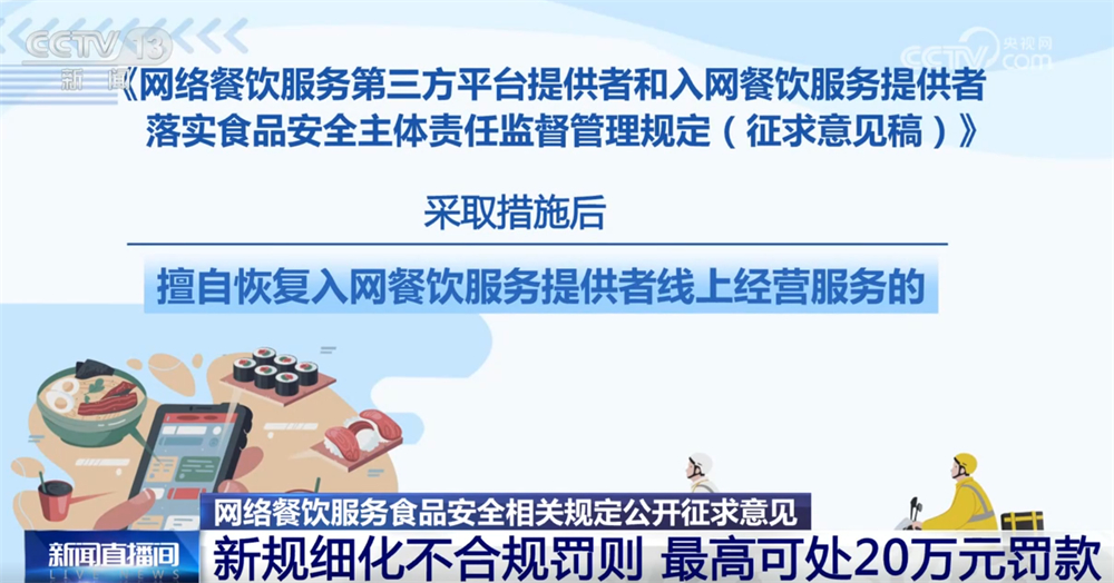 按照收罗看法稿,平台收到市场监视办理部分关于入网餐饮办事供给者违法违规行为消息等传递未采纳响应办法的;采纳办法后私行恢复入网餐饮办事供给者线上运营办事的;以及未将入网餐饮办事供给者运营天分取省级市场监视办理部分从体天分消息进行校验比对等行为将面对五万元以上二十万元以下罚款。