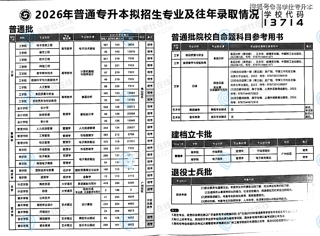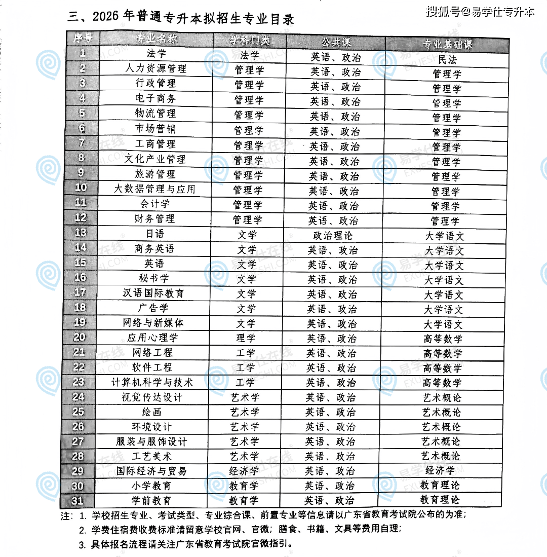 目前电子科技大学中山学院、广东科技学院、广东工商职业手艺大学、湛江科技学院、珠海科技学院、广东软件学院等院校已发布2026年通俗专升本拟招生专业。下方做了汇总,同窗们能够参考。